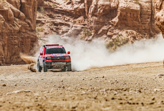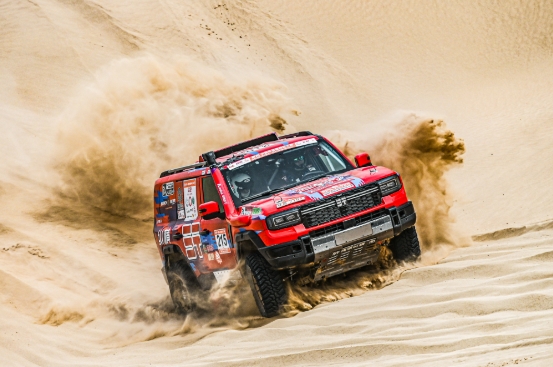 新增的SS2阿拉尔赛段全段穿越塔克拉玛干沙漠腹地,与SS4沙海老兵赛段相同,随时可能遭遇不可预料的沙尘暴天气。纵横G700凭借智能全地形模式、非承载式车身+三把差速锁等全地形越野能力,搭配悬架可MAX140mm,最小离地间230mm,最大320mm,全面保障极端路况下的稳定性与脱困能力。一往无前的车辙,呼啸着撕开沙浪,谱写出属于纵横G700的沙漠进行曲。
