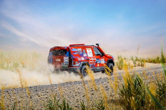 6月1日,2025 环塔拉力赛在麦盖提营地热力收官。历经13天鏖战、约4500公里征途与10个魔鬼赛段,在备受关注的T2.E量产混合动力越野车组,4台纵横G700未上市即参赛,首秀拿下个人亚军,全军团顺利完赛!