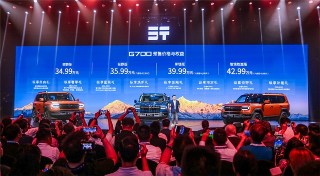 9月19日,以“标记新时代”为主题的2025纵横之夜暨G700预售发布会在上海盛大开幕。“全领域豪华电混越野SUV”G700全球预售正式开启,共推出4款配置车型,预售价34.99万-42.99万元,提供纵享自由礼、纵享奢享礼、纵享星联礼、纵享焕新礼、纵享金融礼、纵享限定礼、纵享悦野礼、纵享补能礼八大预售权益,订购不同车型享受不同礼遇,提前锁定多元购车惊喜。集更硬核、更豪华、更智能、更尊享四大核心技术于一身,G700将以“豪华越野新坐标”之姿,为全球用户带来突破想象的百万级越野新体验,标记中国豪华越野新时代!