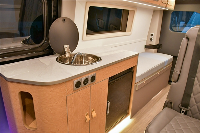 在空间布局上,先锋官V宿营车更是将“实用与舒适”做到极致。得益于方正的车身结构与同级领先的 1.82m 内宽,为改装预留了充足空间——通过模块化分区设计与人性化动线规划,将睡眠区、会客区、独立卫浴系统、厨房区及储物空间高效整合,实现“一车多用”的全能体验,让旅途既自在又整洁。