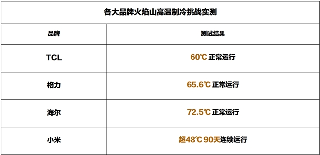 小米空调将测试重点放在了极端高温环境下的运行可靠性。在超48℃高温环境下,空调实现了90天的连续运行。